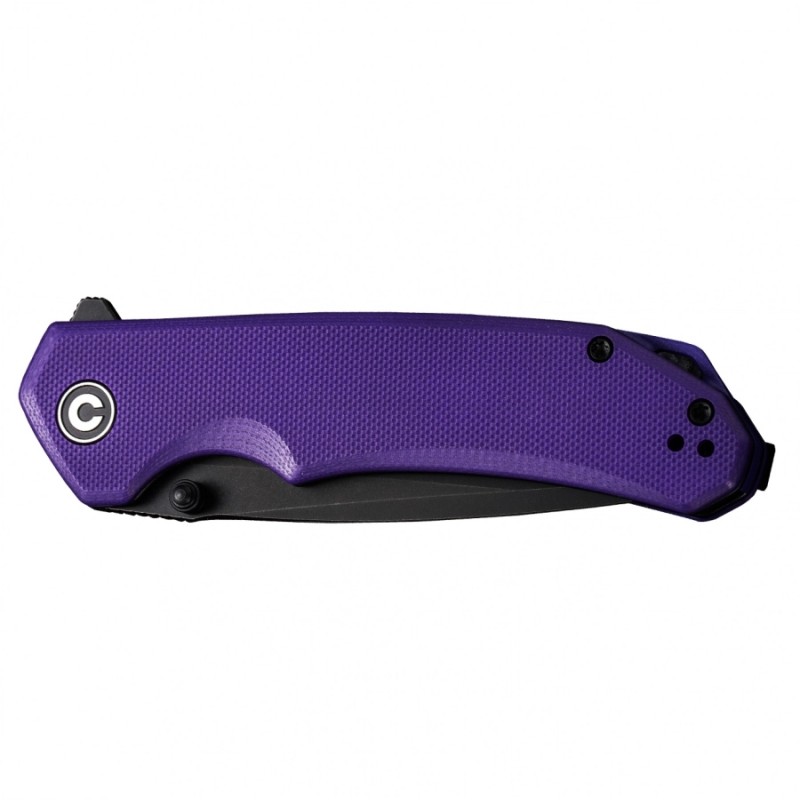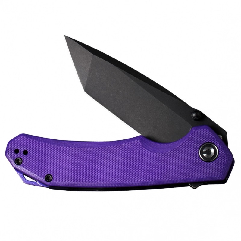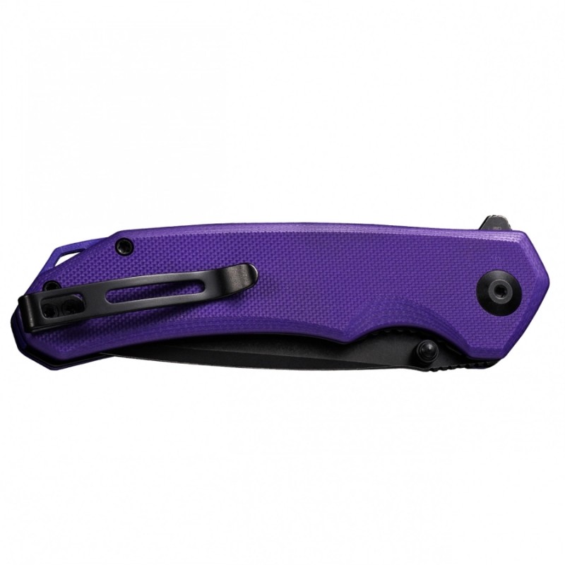 Okładziny rękojeści wykonano z fioletowego G-10 – kompozytu z włókna szklanego i syntetycznej żywicy, lekkiego i niepodatnego na uszkodzenia mechaniczne. Wygładzone krawędzie okładzin poprawiają pewność uchwytu i sprawiają, że nóż dobrze leży w dłoni.