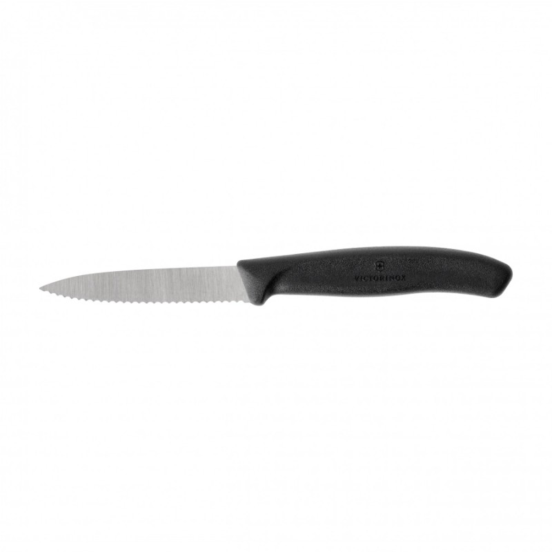 Nóż do pomidorów z ząbkami Victorinox posiada długą na jedenaście centymetrów głownię. Jej ząbkowane ostrze pokroi nie tylko miękkie warzywa, ale sprawdzi się doskonale także przy krojeniu pieczywa. Cięcia nie uszkodzą krojonych produktów i pozostawią eleganckie, równe brzegi. Warto wspomnieć, że czubek noża zaokrąglono, dzięki czemu przypadkowe skaleczenie jest mniej prawdopodobne. Czyni to z Victorinoxa narzędzie bardzo bezpieczne.