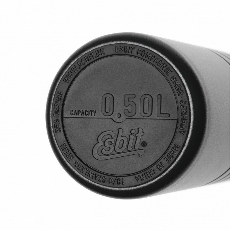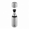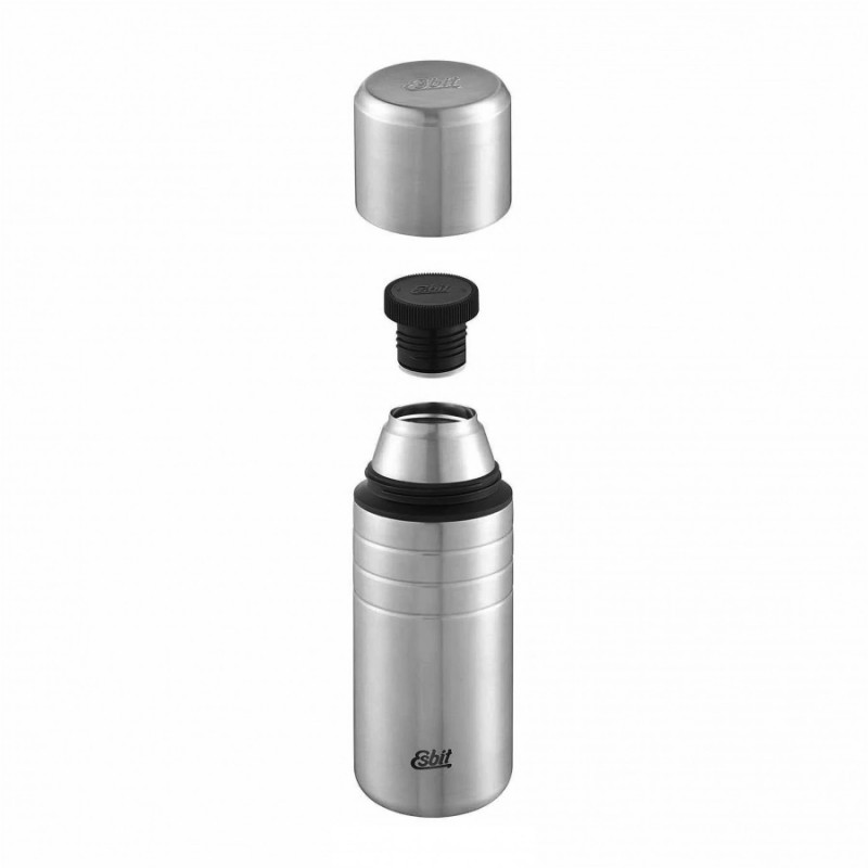 Termos na napoje ESBIT Majoris Vacuum Flask o pojemności 0,5 litra. Jest to wszechstronne naczynie służące do transportowania gorących lub zimnych napojów w terenie, wykonane z wysokiej jakości stali nierdzewnej. Wymiary termosu zostały tak dobrane, aby manipulacja nim nie nastręczała żadnych trudności. Przedstawiony model jest w kolorze srebrnym ze srebrną zakrętką/kubkiem.