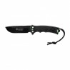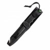 Długą krawędź tnąca sprawia, że praca tym nożem to czysta przyjemność. Elementem, który wyróżnia nóż, jest jego modułowa konstrukcja, dzięki czemu po odkręceniu stalowego trzpienia (w tylnej części chwytu) możemy wysunąć głownię z rękojeści i wykorzystać ją np. do wytworzenia improwizowanej włóczni. Nakrętka blokująca klingę pełni także funkcję pobijaka oraz zbijaka do szyb wykorzystywanego podczas akcji ratowniczej. Profilowana rękojeść z polimeru ma wycięcia na palce oraz skośne żebrowanie, poprawiające chwyt noża. Otwór w rękojeści wykorzystano do wplecenia linki paracord, którą oczywiście można zastąpić innym dodatkiem. Na rękojeści umieszczono wstawki o zwiększonej widoczności, które pomagają w zlokalizowaniu zagubionego noża.