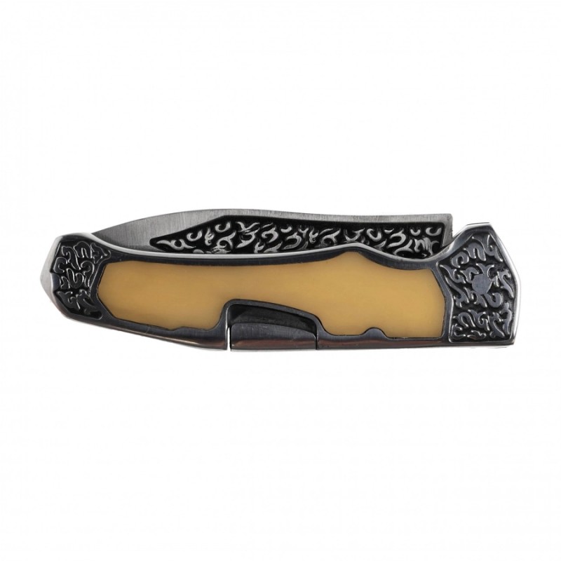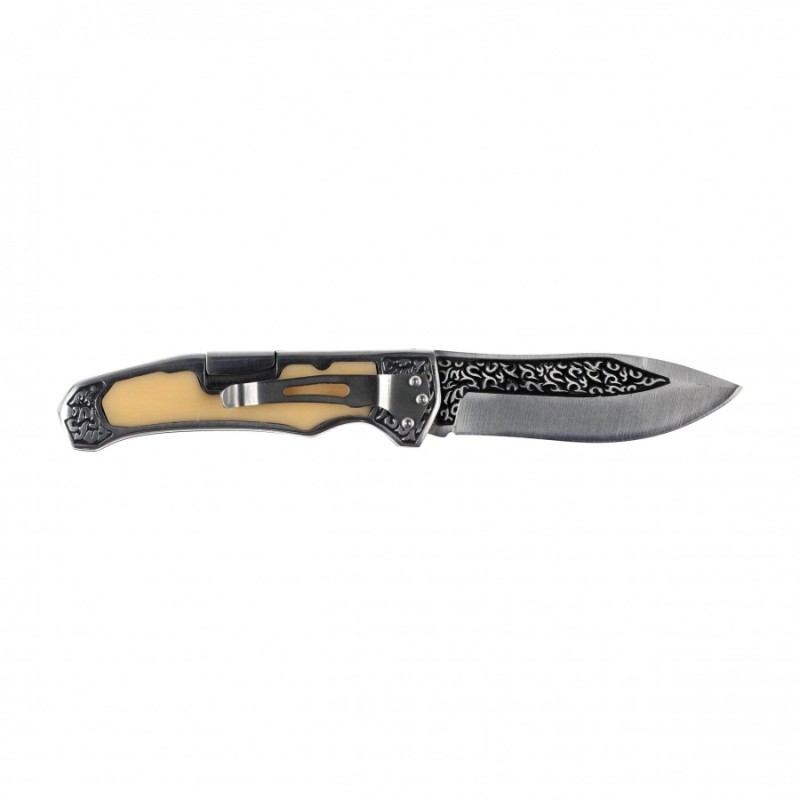 Rękojeść noża, z metalowymi okładzinami i wstawkami zapobiegającymi ślizganiu się, ukształtowano tak, by wygodnie leżała w dłoni. Wyposażono ją w praktyczny klips.