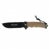 Ganzo Firebird G8012V2-DY to solidny nóż survivalowy o konstrukcji full tang wykonany ze stali nierdzewnej 8Cr13Mov. W zestawie polimerowa pochewka wyposażona w dodatkowe ostrze do cięcia linki, osełkę diamentową oraz kompaktowe krzesiwo.