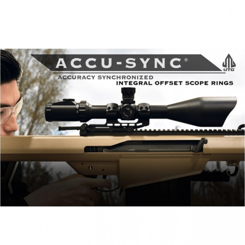 Leapers UTG Accu Sync Offset 34 mm to średni montaż cantilever do montażu celownika optycznego z tubusem 30 mm na dowolnej platformie strzeleckiej.