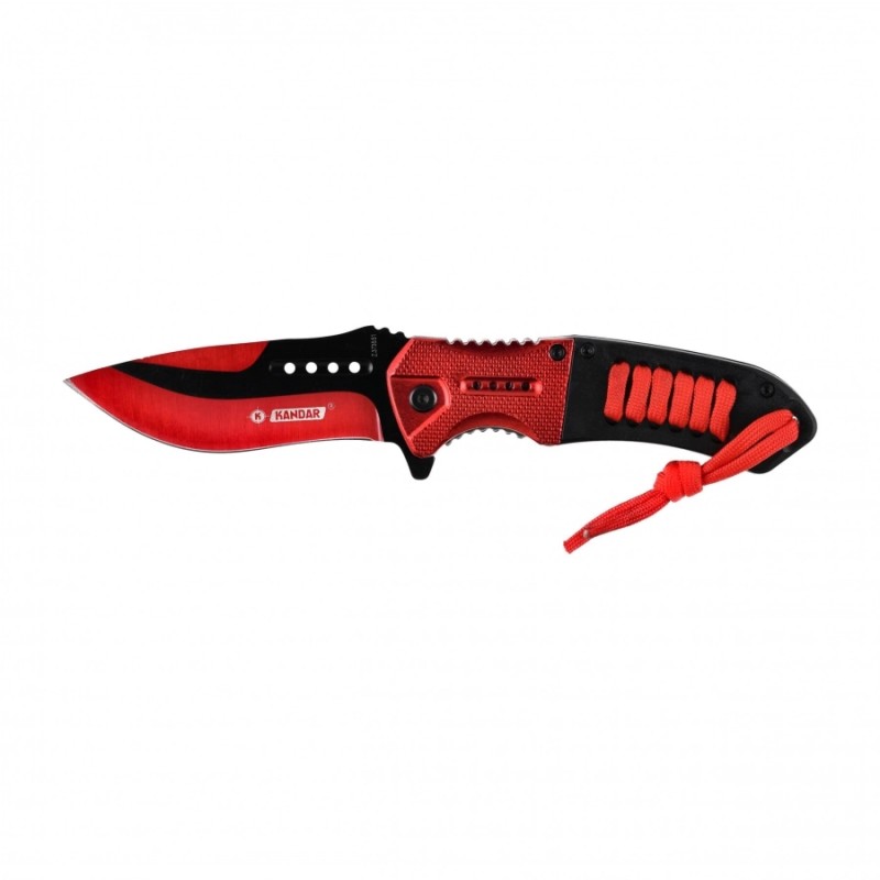 Kandar N375 to składany nóż ratowniczy wyposażony w rozkładaną jedną ręką głownię ze stali 440 oraz ostrze do cięcia pasów samochodowych i lin.
