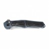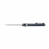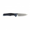 Zaprojektowana jako jednolita konstrukcja integralna, rękojeść została wykonana z wysokogatunkowego tytanu 6AL4V, wzbogaconego o inkrustacje z Shredded Carbon Fiber w odcieniach czerni i błękitu. To połączenie lekkości, wytrzymałości i artystycznego wyrazu, które nie tylko podnosi funkcjonalność, ale także przyciąga wzrok. Jej ergonomiczny kształt doskonale układa się w dłoni, zapewniając komfort i pewność chwytu nawet podczas wymagających zadań.