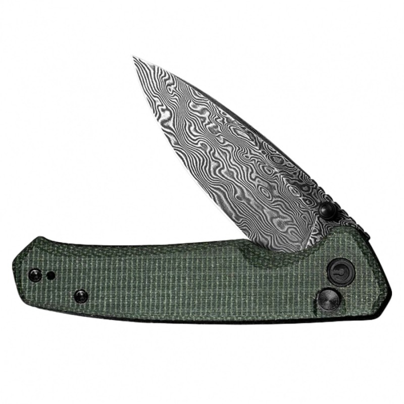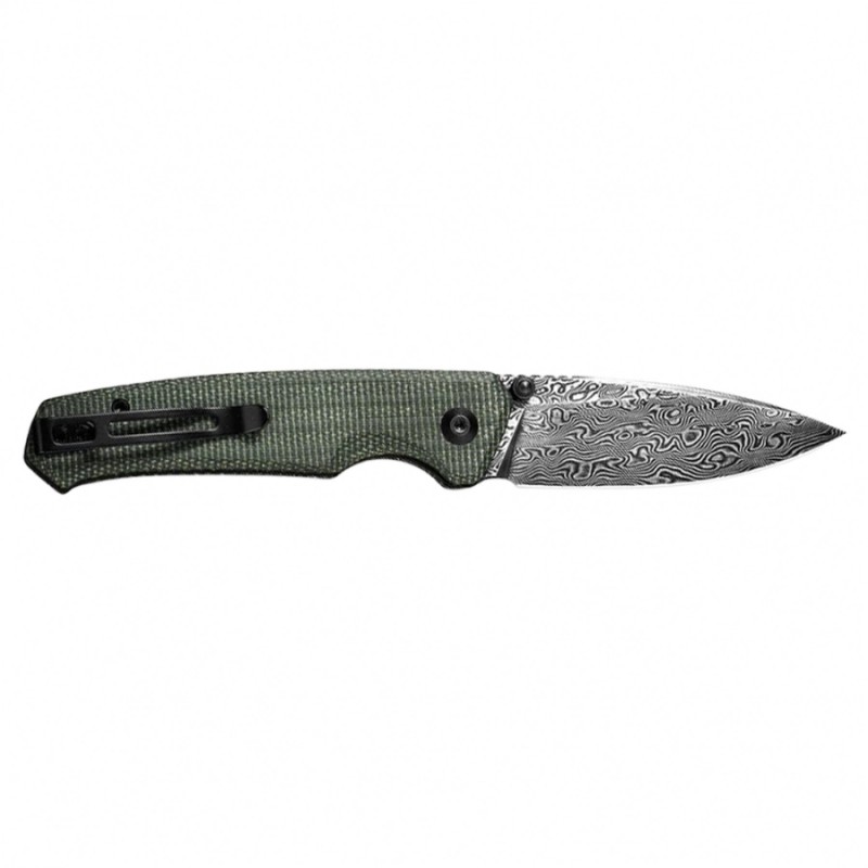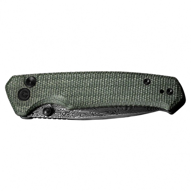 Rękojeść Civivi Altus wykonano z zabarwionej na zielono Micarty. Wygładzone krawędzie okładzin oraz podcięcie na palec (fore finger groove) poprawia pewność uchwytu i sprawiają, że nóż dobrze leży nawet w zmęczonych i spoconych dłoniach. Dzięki otwartej konstrukcji (open backed) narzędzie można czyścić i oliwić bez większych problemów.