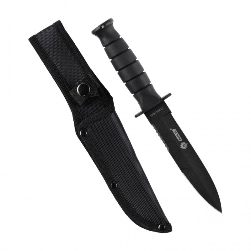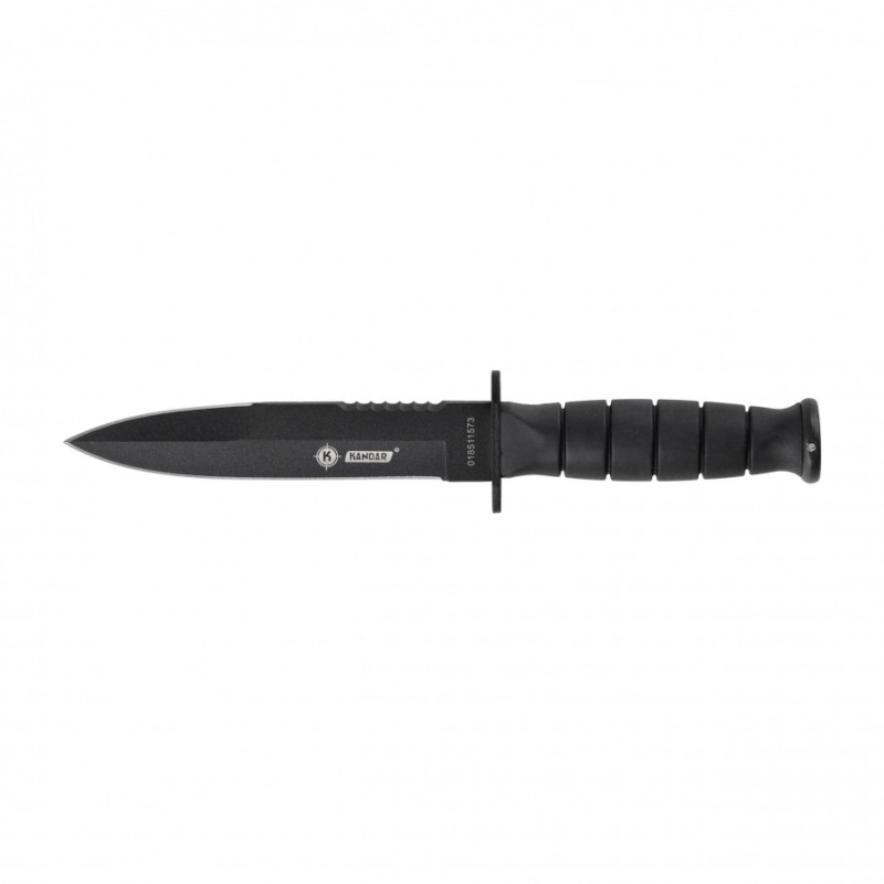 Nóż wojskowy Kandar typu finka z profilem głowni Spear Point, wyposażony w stałą klingę w konstrukcji hidden tang, jest doskonałym narzędziem o przeznaczeniu taktycznym. Głownia wykonana jest z wysokiej jakości stali nierdzewnej, co zapewnia trwałość i odporność na korozję, idealnie sprawdzając się w różnych warunkach.