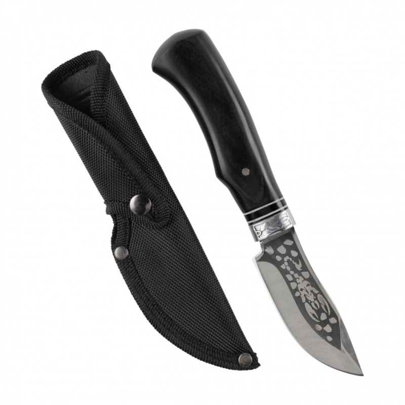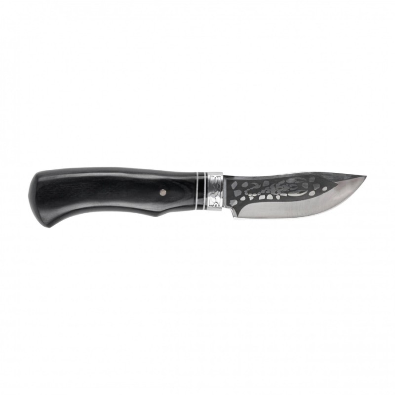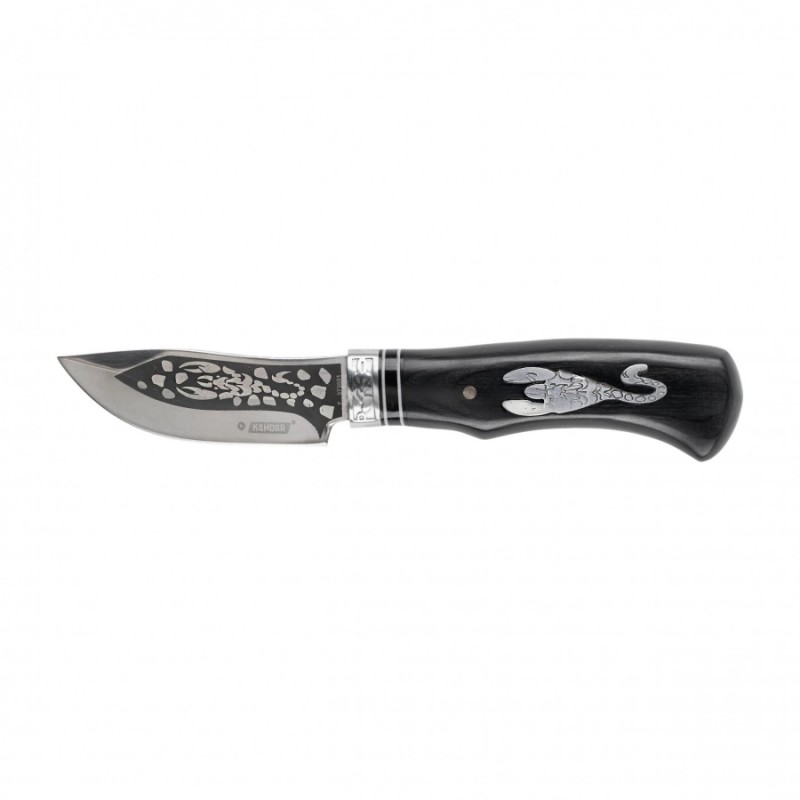 Nóż myśliwski Kandar N164 z głownią typu Trialing Point, wyposażony w stałą klingę p konstrukcji hidden tang, to solidne narzędzie idealne do wszechstronnych zastosowań. Głownia wykonana jest z nierdzewnej stali, co zapewnia trwałość i odporność na korozję, czyniąc nóż niezawodnym w różnych warunkach.