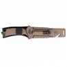 Stal nierdzewna 440 w połączeniu z klingą full tang o grubości 5 mm jasno definiują do czego został stworzony nowy nóż Ganzo. Rąbanie i "batonowanie" nie zrobią na nim wrażenia, a długa na ponad 11 cm krawędź tnąca nadaje wygody i komfortu podczas posługiwania się G8012-DY. Co ciekawe, ostrze jest w pełni wyjmowalne z rękojeści – wystarczy odkręcić tylną nakrętkę blokującą ostrze z chwytem, a sama nakrętka zaś pełni funkcję zbijaka do szyb. Warto w tym miejscu wspomnieć również o specjalnym profilu na górnej krawędzi ostrza przygotowanym pod użycie krzesiwa.