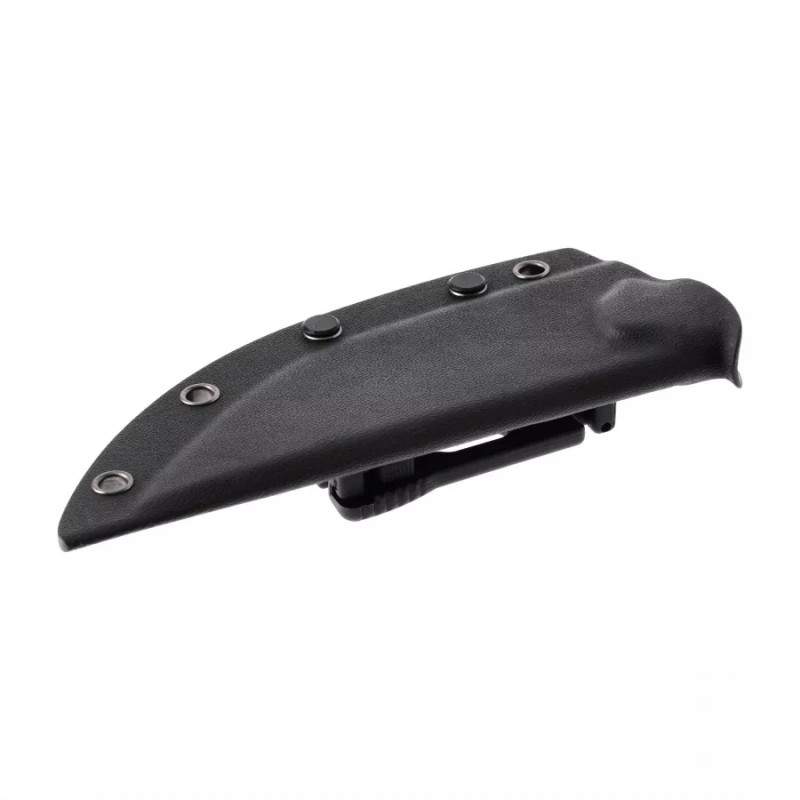 Wykonaną z czarnego kydexu pochwę wyposażono w klips T-Clip. Dzięki temu, po zamocowaniu do paska, można regulować jej położenie zarówno w płaszczyźnie poziomej, jak i pionowej, zależnie do indywidualnych preferencji.