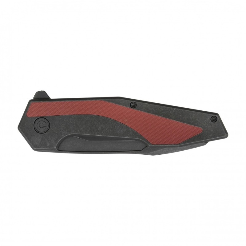 W folderze Civivi zastosowano rękojeść wykonaną z czarnej stali, która ma wkładki z kompozytu G-10 w kolorze burgundowym.