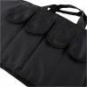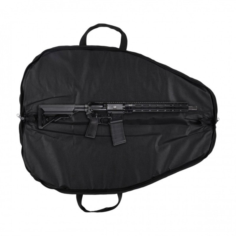 Wygodne, wzmocnione uchwyty i regulowany pas nośny pozwalają na komfortowe przenoszenie pokrowca, niezależnie od dystansu. Dodatkowe klamry stabilizujące zapewniają, że zawartość nie przesuwa się wewnątrz podczas marszu lub jazdy autem. Klasyczna czerń z haftem tarczy celowniczej podkreśla profesjonalny charakter produktu.