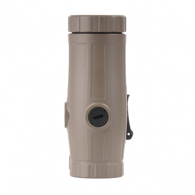Powiększalnik Holosun HM3X QD Flip to Side to wytrzymałe urządzenie do kolimatorów, w którym zastosowano optykę o wysokiej transmisji światła oraz szybki montaż typu Flip QD (Quick Detechable) wraz z dystanserem wysokości. Magnifier HM3X to przystawka o 3-krotnym powiększeniu montowana pomiędzy celownikiem kolimatorowym a okiem strzelca, która pozwala na precyzyjne strzelanie na większych odległości. Z uwagi na funkcjonalność i przydatność powiększalników, z przystawek korzystają strzelcy sportowi, myśliwi oraz służby mundurowe. Model jest w kolorze FDE (piaskowym).