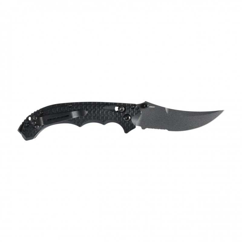 Wyjątkowe połączenie stali klasy premium CPM-S90V i powłoki Cerakote® w kolorze czarnym nadaje ostrzu nie tylko znakomitą odporność na zużycie i korozję, ale także charakterystyczny wygląd. Głownia w stylu zakrzywionej szabli została zoptymalizowana do cięć zaczepnych i długich, płynnych ruchów. To narzędzie, które działa z chirurgiczną precyzją nawet przy dynamicznej pracy.
