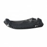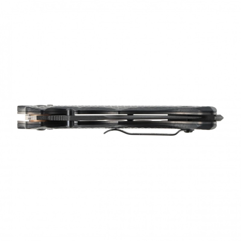 Ergonomia? Wyjątkowa. Okładziny z warstwowanego tworzywa G10 w kolorze czarnym zostały zaprojektowane z myślą o pewnym, bezpiecznym chwycie – nawet w stresie, deszczu czy przy rękawiczkach. Złożone frezowanie, agresywna tekstura, ząbkowane elementy i zaokrąglony backspacer tworzą konstrukcję, która wręcz „klei się” do dłoni i naturalnie podąża za jej ruchem.