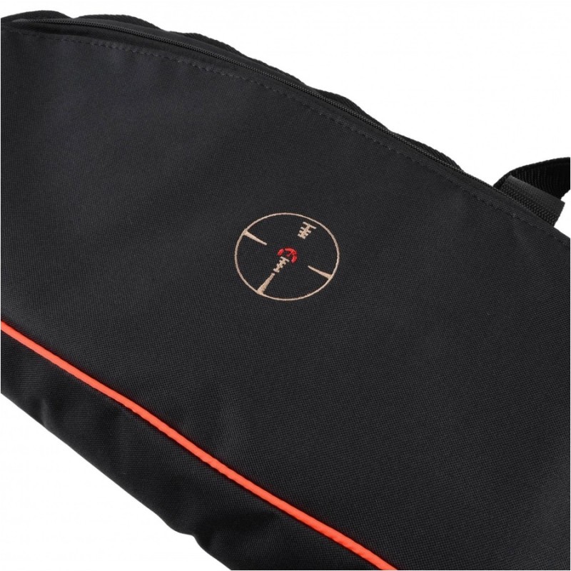 Pokrowiec na broń myśliwską Forsport LPDK o długości 1,25 metra, w kolorze czarnym z pomarańczową bizą to niezawodne akcesorium służące do transportowania broni, zaprojektowane dla myśliwych oraz strzelców rekreacyjnych. Model ten łączy w sobie wysoką jakość wykonania, elegancki wygląd i praktyczne rozwiązania. Pokrowiec jest wykonany z wytrzymałego włókna poliestrowego/polipropylenowego, dzięki czemu cechuje się wyjątkową trwałością uszkodzenia i przedarcia oraz elegancją. Za zamykanie służą masywne, podwójne zamki błyskawiczne. Na przedniej kieszeni wyszyto haft przedstawiający celownik.