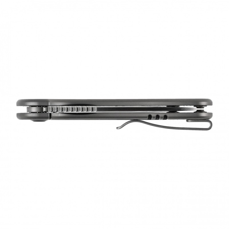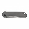 Rękojeść wykonano z tytanu, metalu lekkiego i niepodatnego na uszkodzenia mechaniczne. Wygładzone krawędzie okładzin poprawiają pewność uchwytu i sprawiają, że narzędzie dobrze leży w dłoni. Producent zadbał również o wygodny transport noża, wyposażając go w obustronny, tytanowy klips.