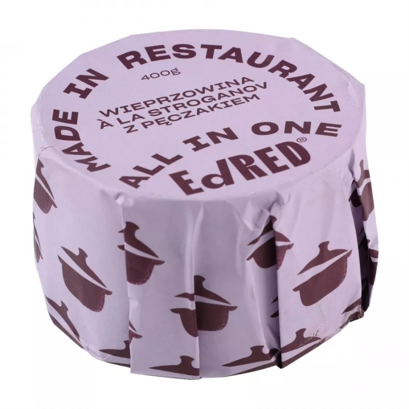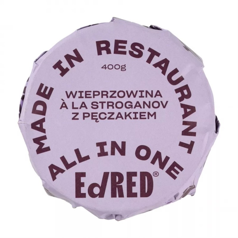 Konserwa Ed Red o smaku wieprzowiny a'la Strogonov z pęczakiem z serii ALL IN ONE to pyszne danie przygotowane wyłącznie z naturalnych składników, umieszczone w ekologicznym opakowaniu z długim terminem przydatności do spożycia.