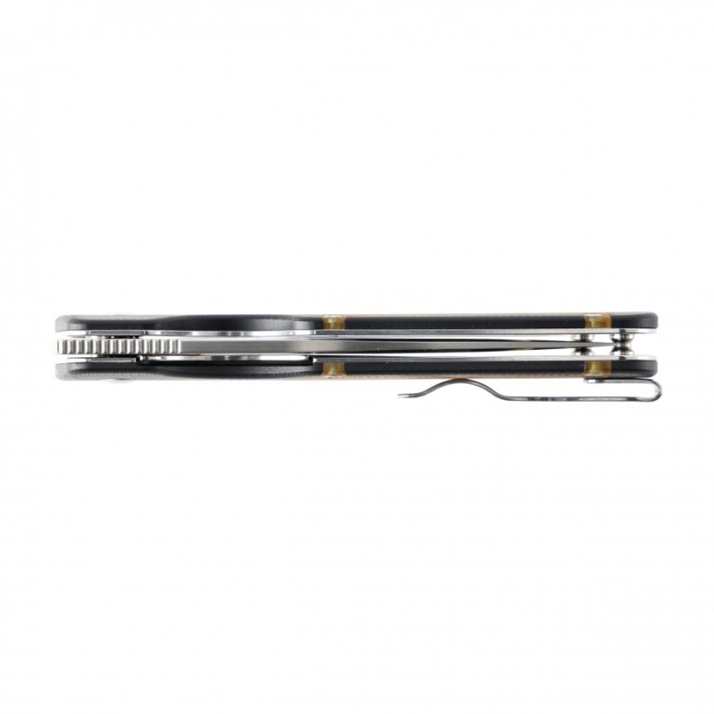 Rękojeść wykonano z laminatu G-10 i termoplastycznego polieteroimidu, co gwarantuje komfort i pewny chwyt podczas użytkowania. Jej ergonomiczny kształt sprawia, że nóż doskonale leży w dłoni, nawet podczas dłuższego użytkowania. Nóż jest również wyposażony w klips do noszenia, umożliwiający bezpieczne i dyskretne przymocowanie do paska lub kieszeni.
