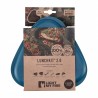 Light My Fire LunchKit 2.0 to kompletny zestaw do spożywania posiłków poza domem: praca, szkoła, piknik czy wakacje. Zawiera w sobie dwa talerze, uniwersalne sporki (duży oraz mały) oraz dwa szczelne pojemniki typu SnapBox o różnych kształtach i pojemnościach, ułatwiające organizację i transport jedzenia. Produkty są w pełni ekologiczne, wolne od BPA. Przedstawiona wersja jest w kolorze mglistego granatu.