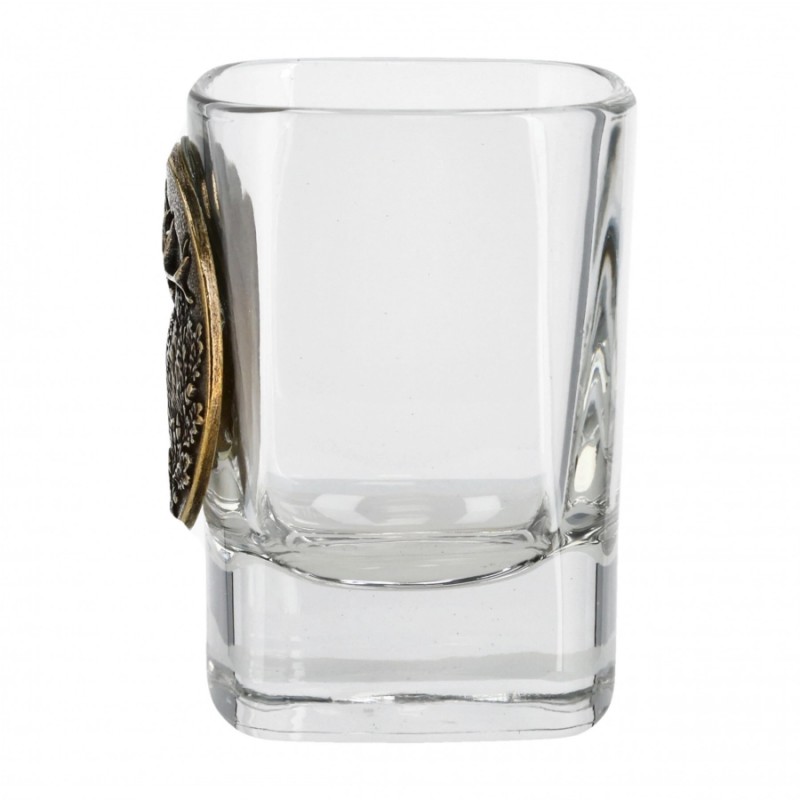Kieliszki Golden Fox Qube to komplet stylowych kieliszków zdobionych odlewaną plakietką w kolorze mosiądzu. Kieliszki idealnie sprawdzą się jako prezent dla myśliwego.