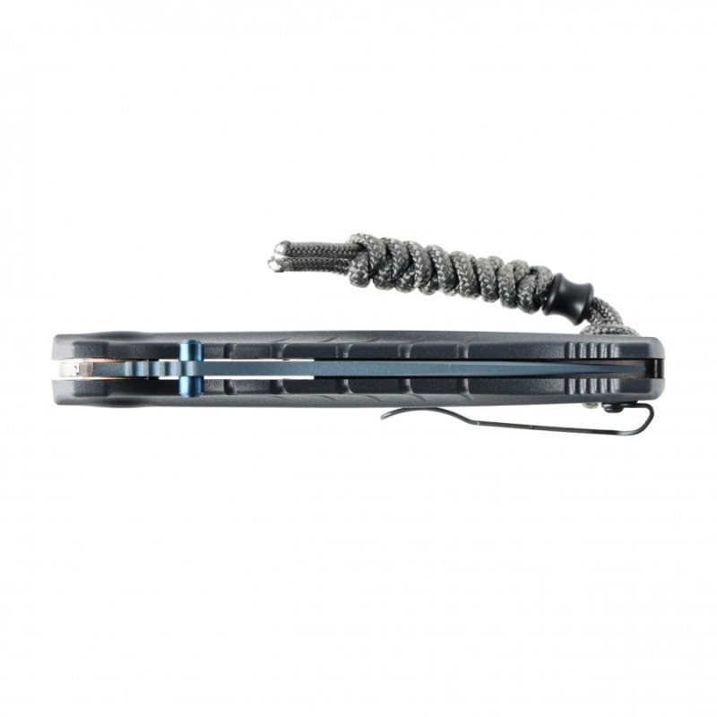 W rękojeści znajduje się również otwór umożliwiający mocowanie linki lub oplotu z paracordu. Razem z folderem Benchmade użytkownik otrzymuje temblak z paracordu w kolorze pomarańczowym.