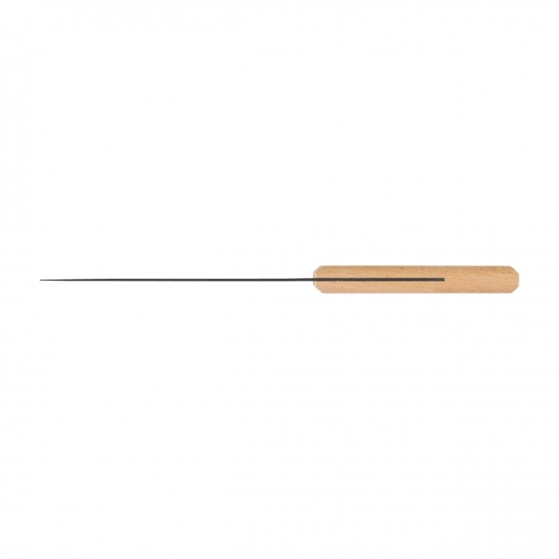 Rękojeść noża wykonano z naturalnego drewna bukowego. Dzięki starannemu wyprofilowaniu dobrze leży w dłoni i zapewnia wysoki komfort pracy. Sprawdzi się zwłaszcza podczas filetowania ryb, usuwania skóry czy krojenia wędlin na cienkie plastry.