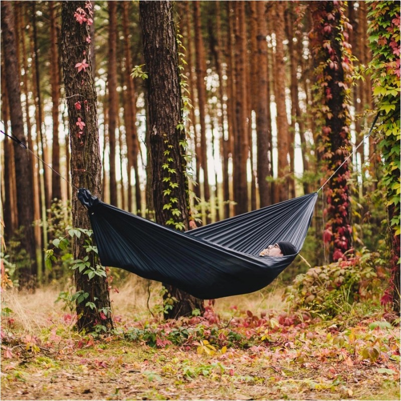 Dzięki imponującej nośności do 250 kg hamak jest odpowiedni dla szerokiego grona użytkowników. Jego wymiary 330 × 145 cm zapewniają wygodną przestrzeń do odpoczynku, a cały system zawieszenia waży jedynie 520 g, co czyni go niezwykle łatwym do przenoszenia i przechowywania.