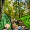 Dzięki imponującej nośności do 250 kg hamak jest odpowiedni dla szerokiego grona użytkowników. Jego wymiary 330 × 145 cm zapewniają wygodną przestrzeń do odpoczynku, a cały system zawieszenia waży jedynie 520 g, co czyni go niezwykle łatwym do przenoszenia i przechowywania.