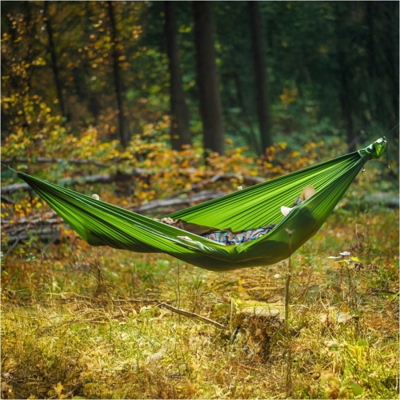 Lesovik Bystry (kolor treetop green) to udoskonalona wersja klasycznego modelu Duch, zaprojektowana z myślą o jeszcze większym komforcie i łatwości użytkowania. Dzięki wydłużonej konstrukcji o 30 cm, jego całkowita długość wynosi teraz 330 cm, co zapewnia więcej przestrzeni do wygodnego wypoczynku. Wykonany z oddychającego nylonu ripstop, hamak łączy w sobie lekkość, trwałość i wygodę, idealnie nadając się do różnych zastosowań outdoorowych.