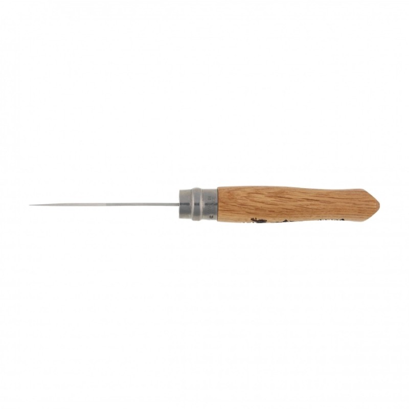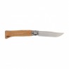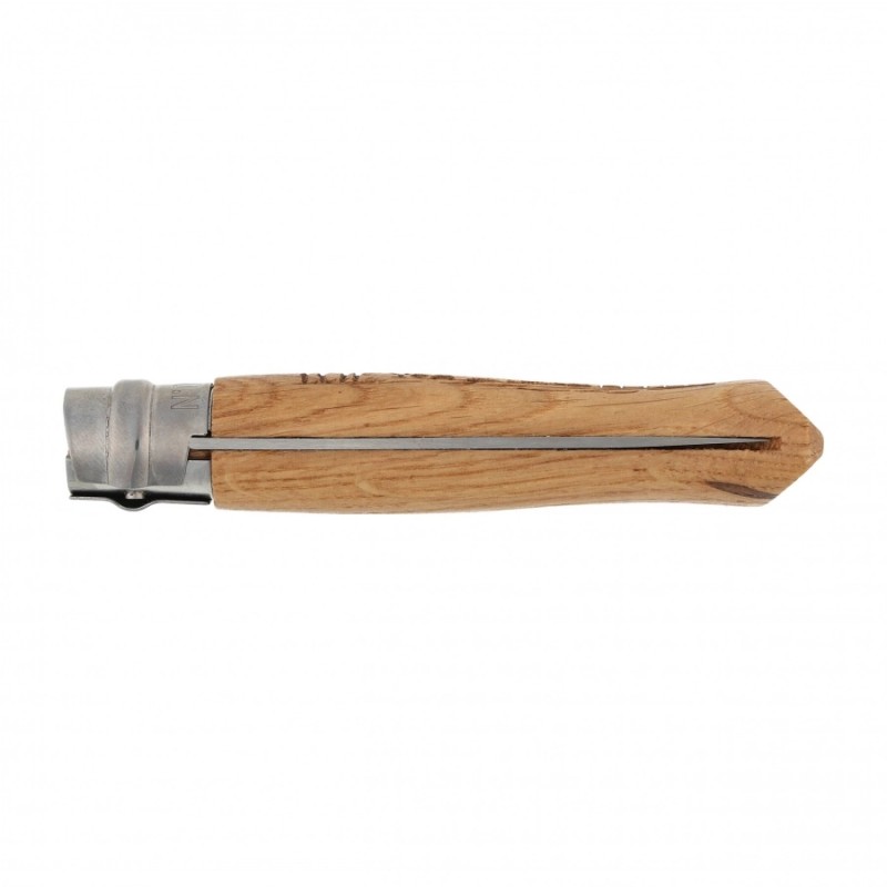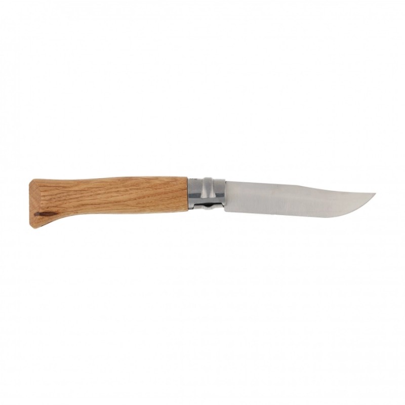 Opinel 8 inox dąb kozica to składany nóż outdoorowy z blokowaną głownią ze stali Sandvik 12C27 oraz rękojeścią z drewna dębowego.