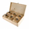 Komplet składa się z sześciu szklanek ozdobionych mosiężnymi tabliczkami z wizerunkiem byka. Zestaw ekskluzywnych szklanek pakowanych w drewniane pudełko to wyjątkowy prezent dla leśnika, myśliwego oraz każdego dorosłego pasjonata kultury łowieckiej.