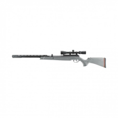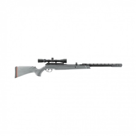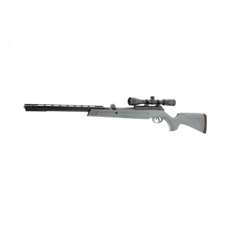 Wiatrówka UX Synergis Elite Kit w kalibrze 4,5 mm Diabolo to nowoczesny karabinek sprężynowy z dolnym naciągiem. Cechuje go solidna jakość wykonania oraz stylistyka luźno nawiązująca do broni snajperskiej. Wiatrówkę wyposażono w polimerową osadę z ergonomicznym chwytem, łożem oraz kolbą z baką policzkową. Dodatkowo karabinek ma na komorze tłoka fabrycznie zainstalowaną szynę montażową Picantinny 22 mm umożliwiające instalację celownika kolimatorowego lub optycznego. Cechą wyróżniającą przedstawiony model na tle innych jest lekka i ażurowa lufa oraz zasilanie z rotacyjnych magazynków mieszczących 10 śrucin. Wiatrówka jest dedykowana każdemu, kto chce doskonalić swoje umiejętności strzeleckie oraz do strzelania precyzyjnego i sportowego.