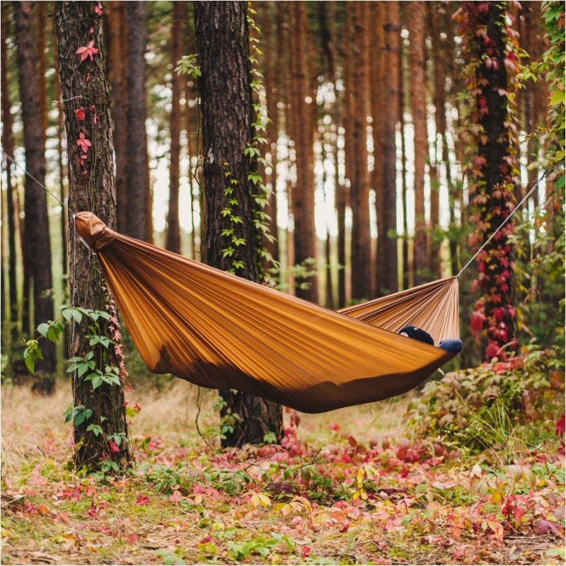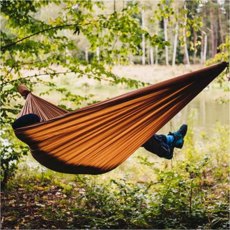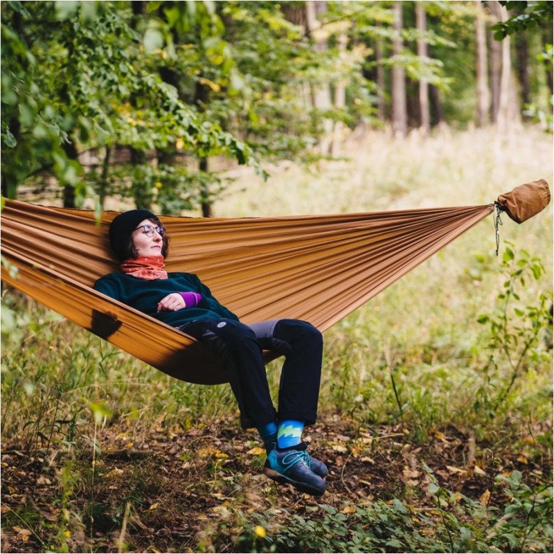 Lesovik Bystry (kolor golden brown) to udoskonalona wersja klasycznego modelu Duch, zaprojektowana z myślą o jeszcze większym komforcie i łatwości użytkowania. Dzięki wydłużonej konstrukcji o 30 cm, jego całkowita długość wynosi teraz 330 cm, co zapewnia więcej przestrzeni do wygodnego wypoczynku. Wykonany z oddychającego nylonu ripstop, hamak łączy w sobie lekkość, trwałość i wygodę, idealnie nadając się do różnych zastosowań outdoorowych.