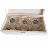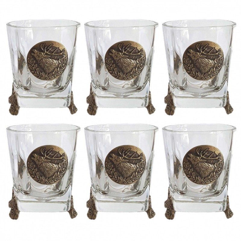 Komplet składa się z sześciu szklanek o kwadratowej podstawie, które zdobią mosiężne nóżki i medaliony z wizerunkiem ryczącego jelenia. Zestaw ekskluzywnych szklanek pakowanych w drewniane pudełko to wyjątkowy prezent dla leśnika, myśliwego oraz każdego dorosłego pasjonata kultury łowieckiej.