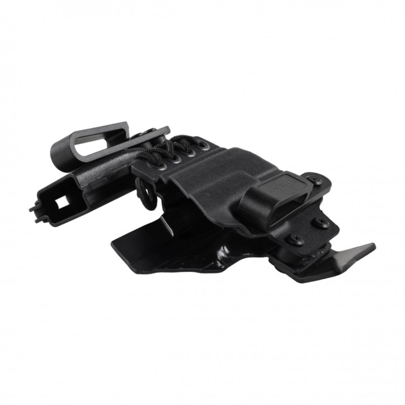 Mocowanie odbywa się za pomocą dwóch regulowanych klipsów z tworzywa o szerokości do 43 mm, które można dostosować do sylwetki oraz noszonego pasa taktycznego.