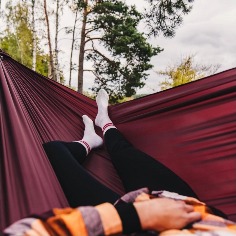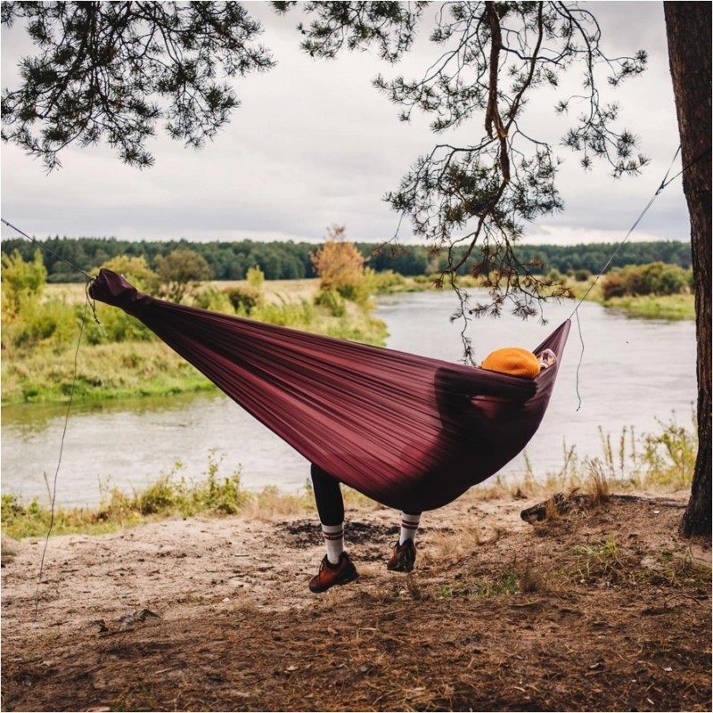Lesovik Bystry (kolor burgundy ron) to udoskonalona wersja klasycznego modelu Duch, zaprojektowana z myślą o jeszcze większym komforcie i łatwości użytkowania. Dzięki wydłużonej konstrukcji o 30 cm, jego całkowita długość wynosi teraz 330 cm, co zapewnia więcej przestrzeni do wygodnego wypoczynku. Wykonany z oddychającego nylonu ripstop, hamak łączy w sobie lekkość, trwałość i wygodę, idealnie nadając się do różnych zastosowań outdoorowych.