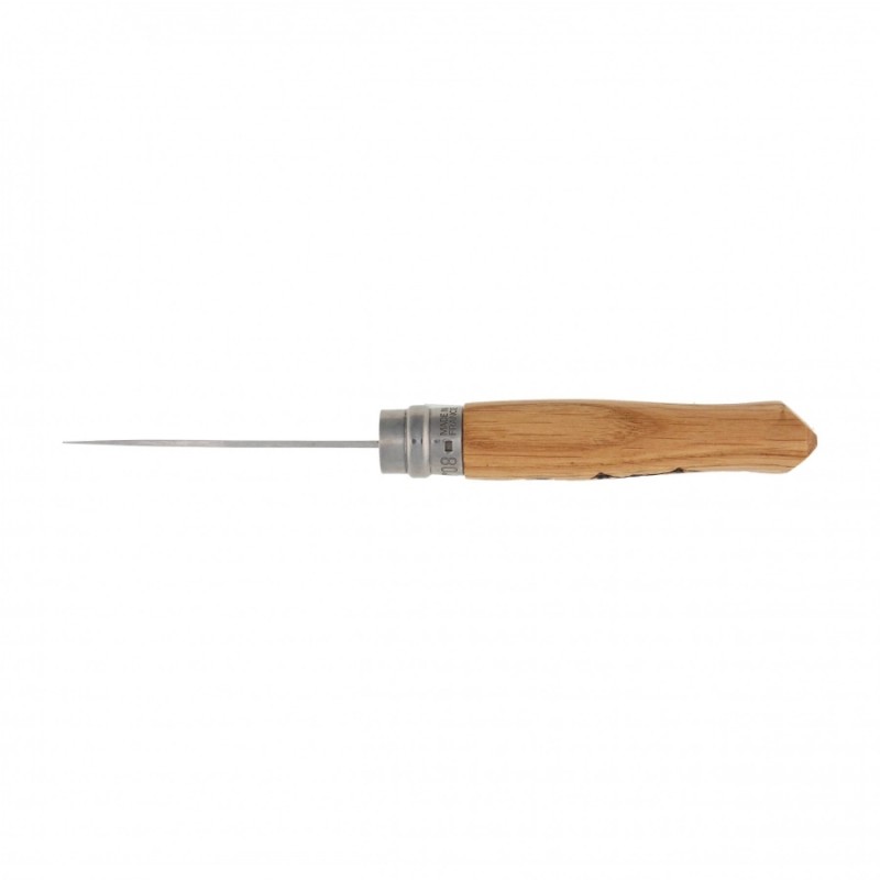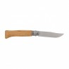 Opinel 8 inox dąb kozica to składany nóż outdoorowy z blokowaną głownią ze stali Sandvik 12C27 oraz rękojeścią z drewna dębowego.