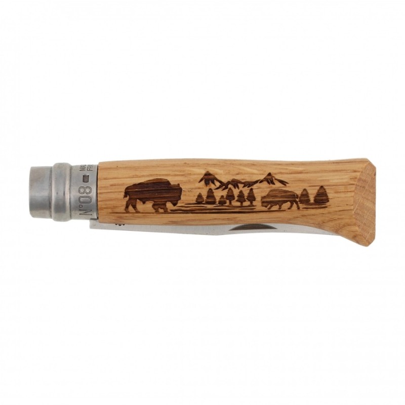 Nóż składany Opinel 8 inox dąb seria Animal - bizon