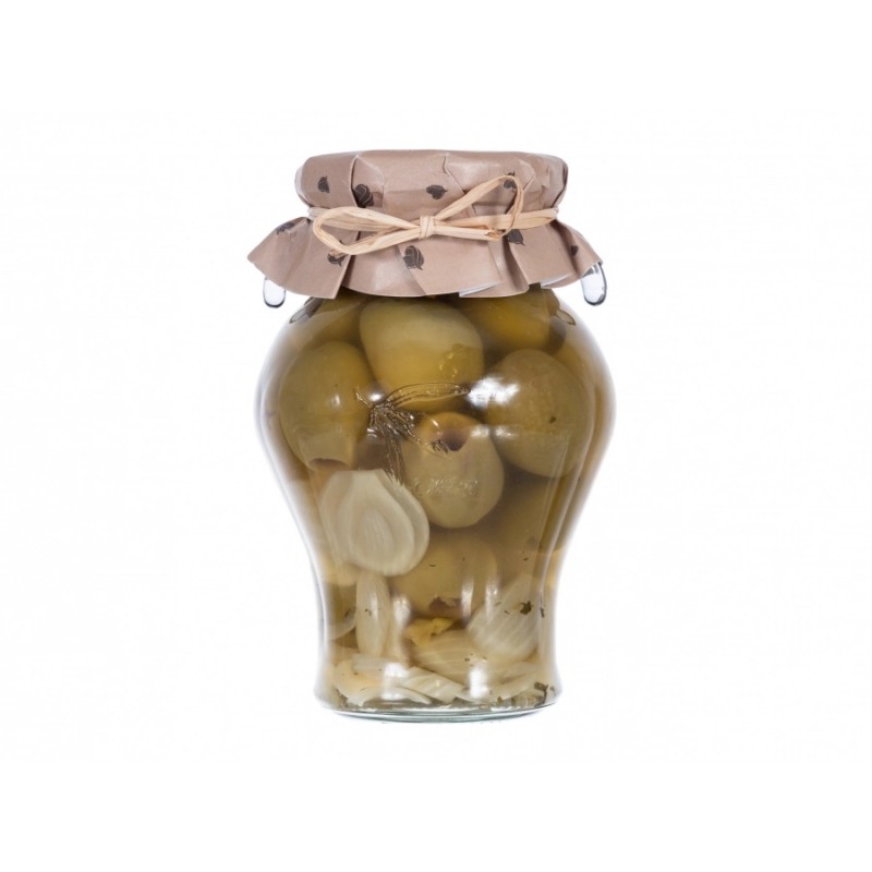 Oliwki pozbawione pestek są marynowane w naturalnej zalewie z oliwy z oliwek, wody, z dodatkiem: liścia laurowego, czosnku, cebulki, ziół i natka pietruszki.