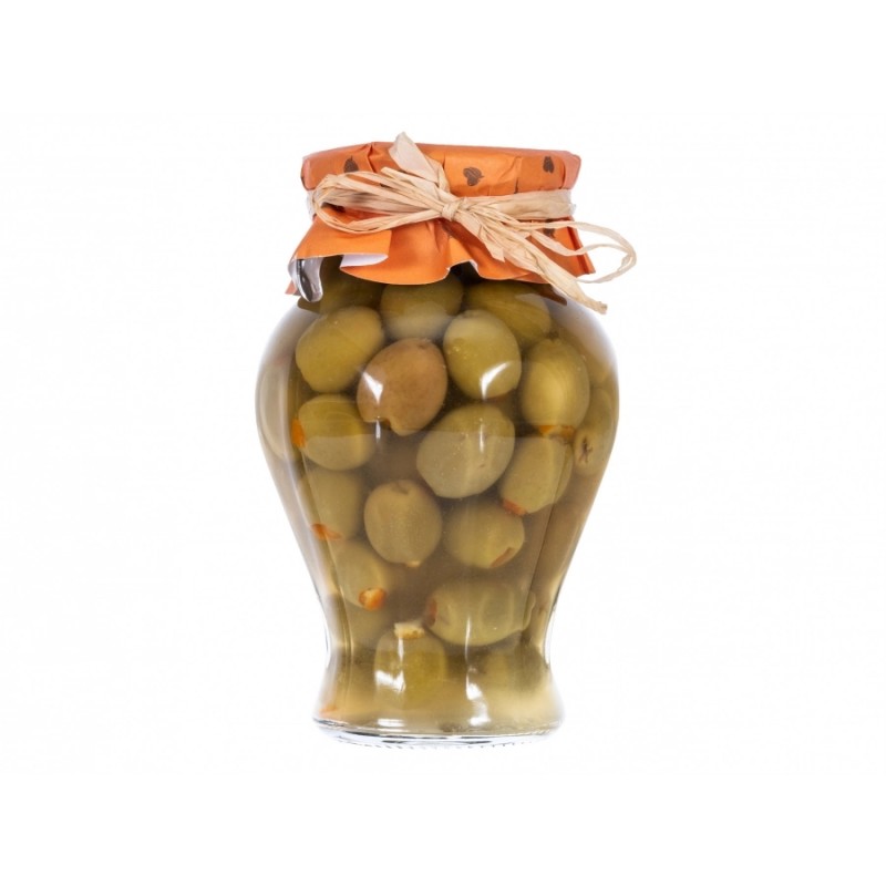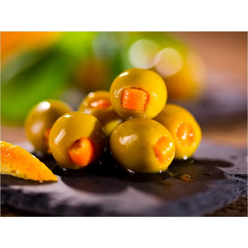 Oliwki Manzanilla nadziewane pomarańczą 300 g to orzeźwiająca przekąska, która najlepiej smakuje podczas posiłku w upalne letnie wieczory.