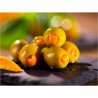 Oliwki pozbawione pestek są marynowane w naturalnej zalewie, zawierającej jedynie wodą, sól morską oraz soczystą pomarańczę.