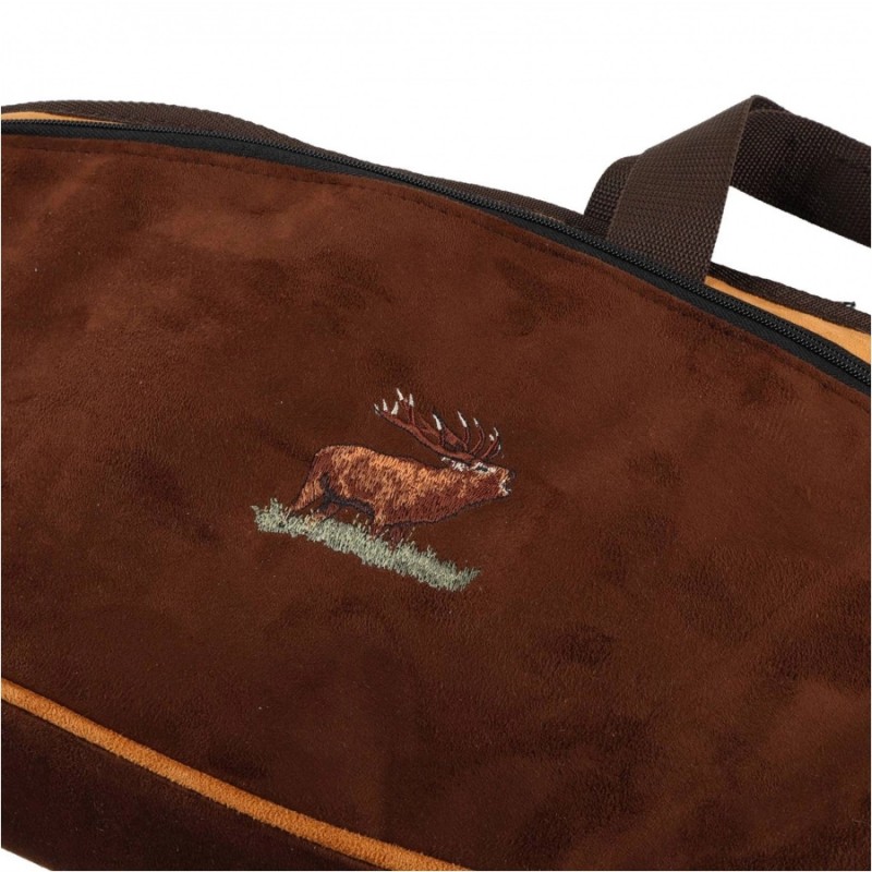 Pokrowiec na broń myśliwską Forsport L2ZPLUS to niezawodne akcesorium służące do transportowania broni, zaprojektowane dla myśliwych oraz strzelców rekreacyjnych. Model ten łączy w sobie wysoką jakość wykonania, elegancki wygląd i praktyczne rozwiązania. Pokrowiec jest wykonany z zamszu i wytrzymałego włókna poliestrowego/ polipropylenowego, dzięki czemu cechuje się wyjątkową trwałością na uszkodzenia oraz elegancją. Za zamykanie służą masywne, podwójne zamki błyskawiczne. Na przedniej kieszeni wyszyto haft przedstawiający ryczącego jelenia. Kolorystyka pokrowca to połączenie koloru brązowego i miodowego.