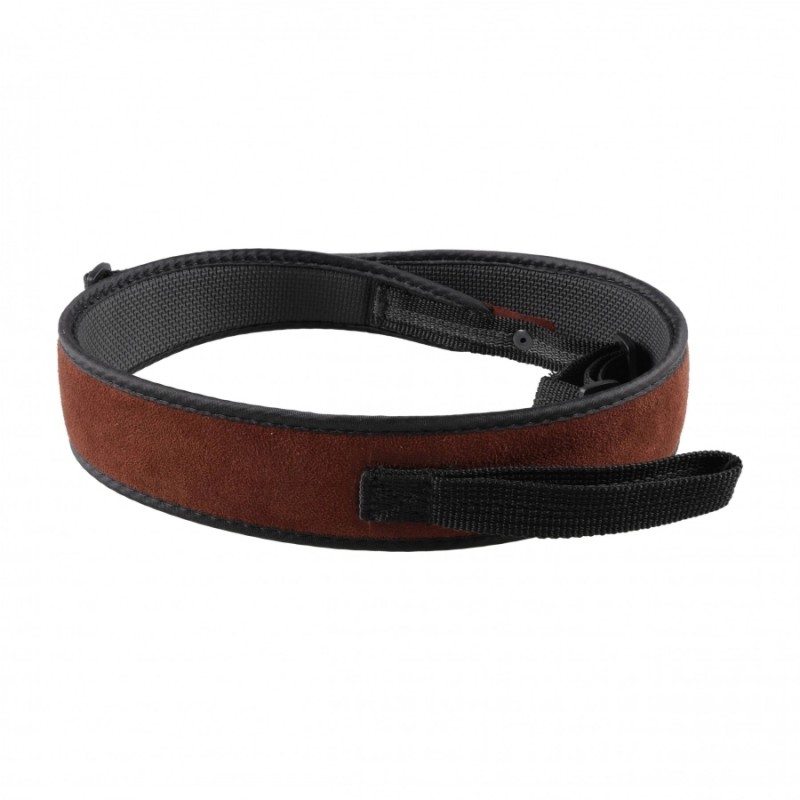 Wykonany z wysokiej jakości neoprenu, pas zapewnia wyjątkową miękkość, elastyczność oraz odporność na ścieranie i działanie warunków atmosferycznych. Imponująca długość części nośnej zapobiega plątaniu się podczas marszu czy zmiany pozycji, a przemyślany uchwyt na palec gwarantuje dodatkową stabilizację – gdy każdy ruch ma znaczenie. Dzięki klasycznemu brązowemu kolorowi i zamszowej fakturze, pas prezentuje się elegancko, zachowując jednocześnie pełną funkcjonalność.