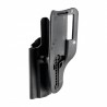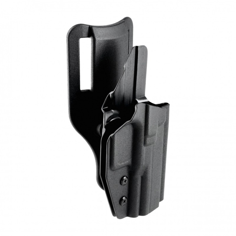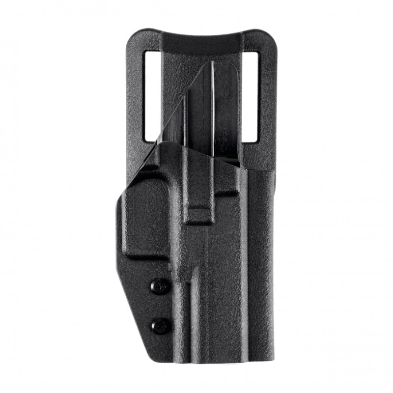Doubletap OWB Strighter to wytrzymała i lekka kabura, wykonana z Kydexu. Wyposażono ją w obniżany montaż, który idealnie współpracuje z kamizelkami taktycznymi, zapewniając błyskawiczny i płynny dostęp do Twojego pistoletu Canik TP9 SF Elite, nawet gdy jest wyposażony w latarkę (np. Streamlight TLR7A). Dzięki kaburze zyskasz przewagę w dynamicznych oraz taktycznych sytuacjach, mając broń w optymalnej pozycji do szybkiego dobycia. Prezentowany model jest w kolorze czarnym.
