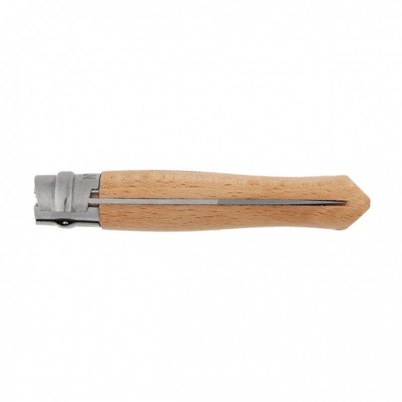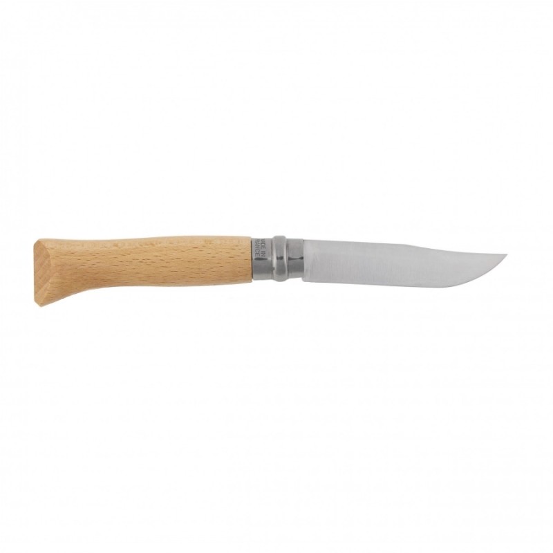 Opinel 8 inox dąb kozica to składany nóż outdoorowy z blokowaną głownią ze stali Sandvik 12C27 oraz rękojeścią z drewna dębowego.