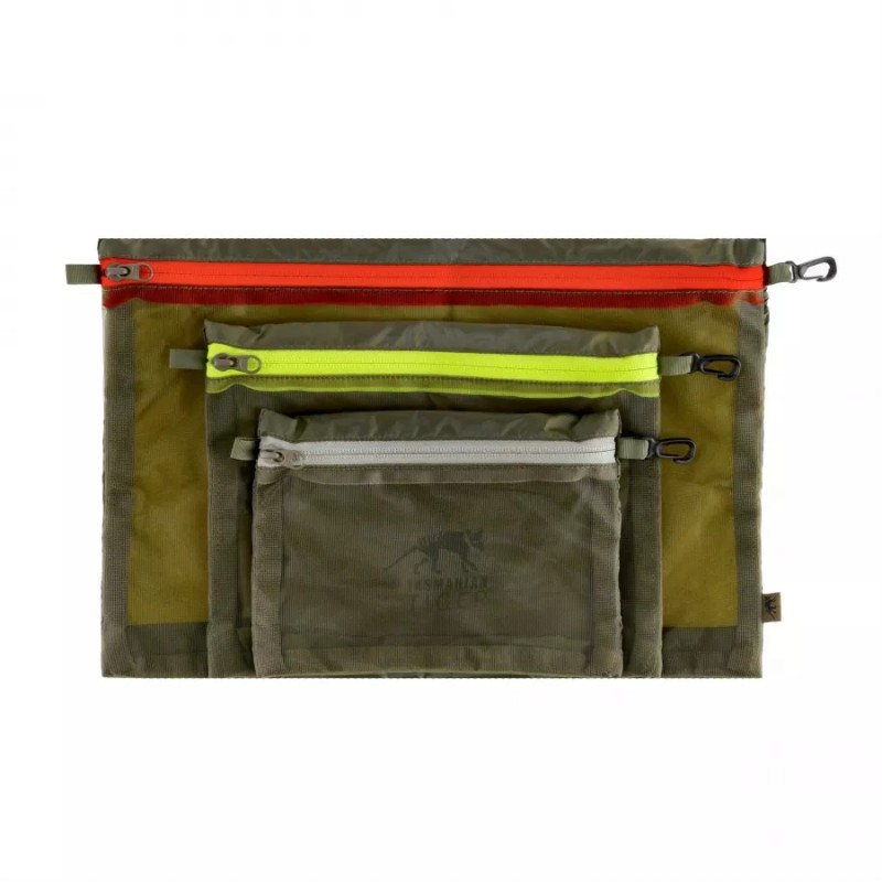 Tasmanian Tiger Mesh Pockets to zestaw trzech organizerów – lekkich i praktycznych. Wykonane z wytrzymałego materiału (Bug Beater Mesh, T-Cover Tex) zapewniają dodatkową przestrzeń do przechowywania mniejszych akcesoriów, ułatwiając jednocześnie ich uporządkowanie. Front organizerów wykonano z siatki, co umożliwia sprawdzenie zawartości bez konieczności otwierania. Organizery zamyka się za pomocą suwaka. Karabińczyk wykonany z trwałego tworzywa pozwala na przyłączenie organizerów do plecaka lub torby.