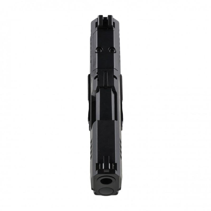 Pomimo kompaktowej formy Canik MC9 ma fabryczny frez do montażu kolimatora. Pistolet ma także standardowe mechaniczne przyrządy celownicze - w tym muszkę z kontrastowymi białymi oznaczeniami. Dwie płytki do popularnych micro celowników kolimatorowych pozwolą nam na bezproblemowy montaż urządzenia. Podlufowa szyna umożliwi nam instalację latarki lub laserowego wskaźnika celu, który również może przyspieszyć namierzanie.