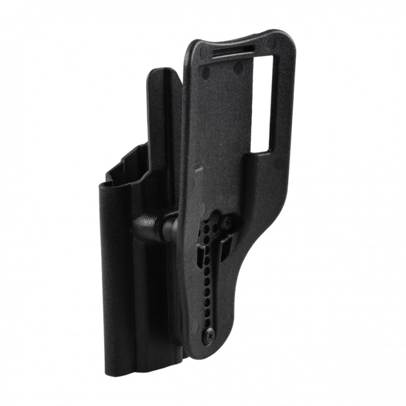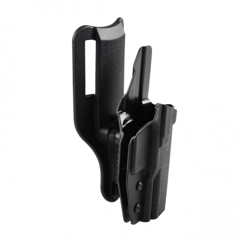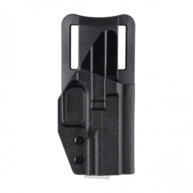 Kabura Doubletap OWB Strighter przeznaczona do pistoletu Canik TP-9 METE-S. Jest to wygodne rozwiązanie przeznaczone dla każdego, kto poszukuje komfortowej i funkcjonalnej kabury do przenoszenia pistoletu Canik. Model ten łączy w sobie wytrzymałość i lekkość polimerowej konstrukcji oraz niewielkie wymiary. Kabura jest wyposażona w płetwę z 2 przelotkami mocującymi do pasa. Blokowanie pistoletu w kaburze następuje dzięki prostemu mechanizmowi retencji. Siła tarcia może zostać łatwo wyregulowana za pomocą śrub. Przedstawiona wersja jest w kolorze czarnym.