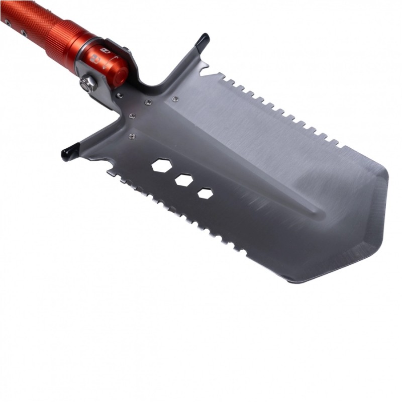 Cechy szpadla składanego Quest:Głownia została stworzona ze stali nierdzewnej o satynowanym wykończeniu, zapewniającą wysoką trwałość i odporność na korozję. Szpadel został zaprojektowany z myślą o efektywnym kopaniu w trudnym podłożu - przede wszystkim bogatym w drobne korzenie roślin. Posiada zaostrzony szpic oraz profilowane w kształt piły boki głowni, co ułatwia pracę i zapewnia wydajne kopanie.